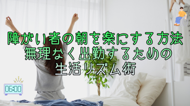 利用者 障がい者の朝を楽にする方法・ 無理なく出勤するための生活リズム術 朝、体が重くてなかなか起き上がれない、仕事に行くのがつらいと感じることはありませんか。日々の体調管理や生活リズムを整えることは、大きな課題になりやすいものです。本記事では、体調を整える「小さな工夫」についてのヒントをご紹介します。 2026.03.19 利用者