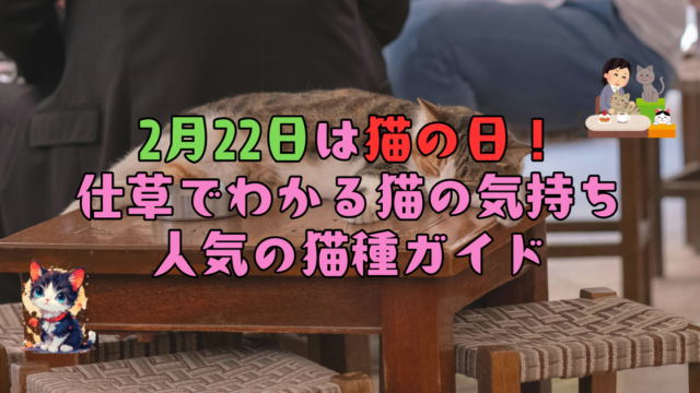利用者 2月22日は猫の日!仕草でわかる猫の気持ちと人気の猫種ガイド 2月22日は、その鳴き声の語呂合わせから「猫の日」とされています。猫の愛くるしい様子を眺めているだけで、心がふんわりと軽くなってきますよね。本記事では、猫の気持ちを読み解くヒントや人気の種類、心温まる猫との関わり方についてご紹介します。 2026.01.24 利用者
